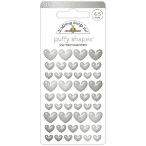Doodlebug Design - Silver Heart Puffy Shapes